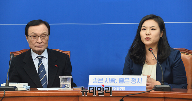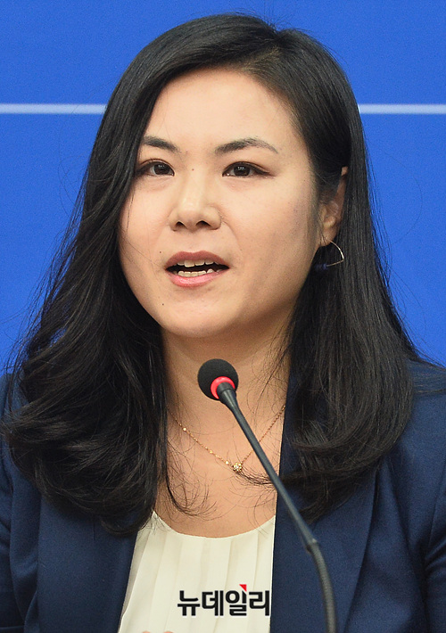 더불어민주당 영입 인재 9호로 임명된 세계은행 선임이코노미스트 최지은 박사가 16일 오전 국회에서 열린 '민주당 인재 영입 행사'에서 인사말을 하고 있다.