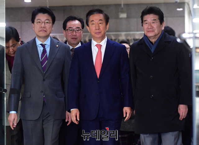 이날 재판에는 강석호, 장제원 의원이 동행했다. 법원 입구서에는 좌파단체 회원들이 김 의원을 규탄하는 기자회견을 열고 실형을 주장했다.