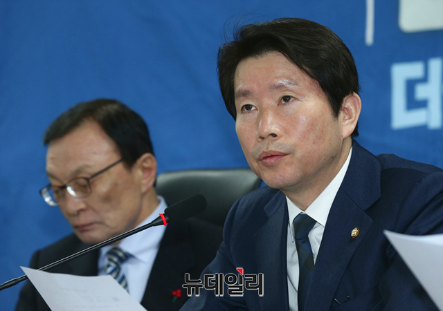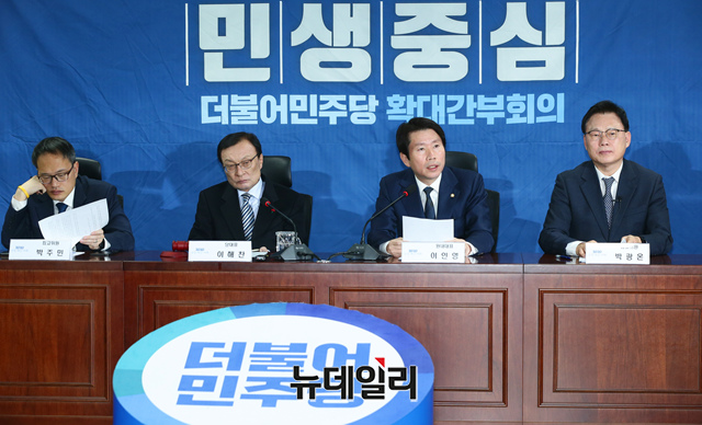 이인영 더불어민주당 원내대표가 17일 오전 국회 의원회관에서 열린 확대간부회의에서 모두발언을 하고 있다.
