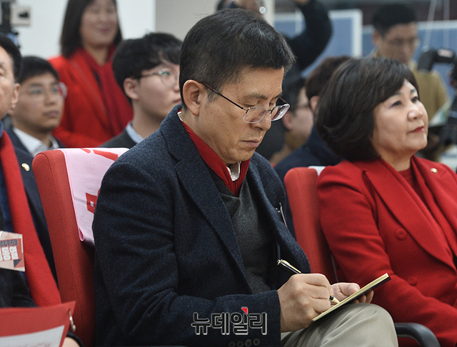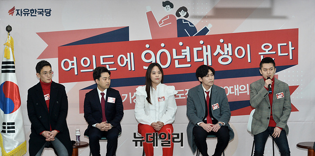 황교안 자유한국당 대표가 19일 오후 서울 영등포구 자유한국당 중앙당사에서 열린 '여의도에 90년대생이 온다-86세대 기성 정치에 도전하는 20대의 반란' 행사에서 90년대생들의 발언을 경청하고 있다.