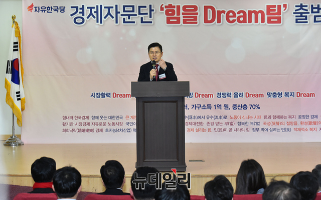 황교안 자유한국당 대표가 20일 오전 국회 의원회관에서 열린 경제자문단 '힘을 드림(Dream)팀' 출범식에서 축사를 하고 있다.