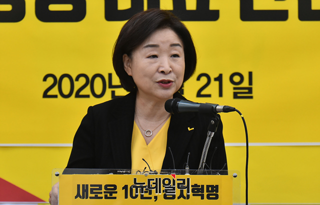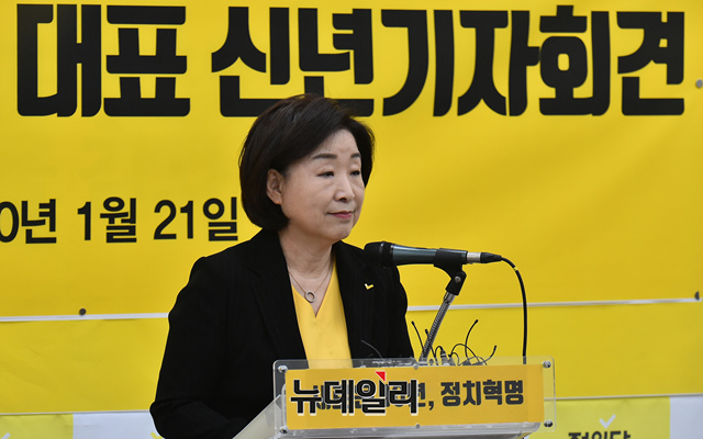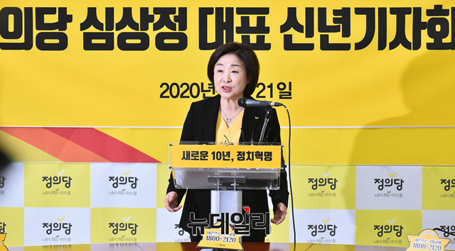 심상정 정의당 대표가 21일 오전 국회에서 신년기자회견을 갖고 있다.