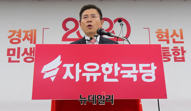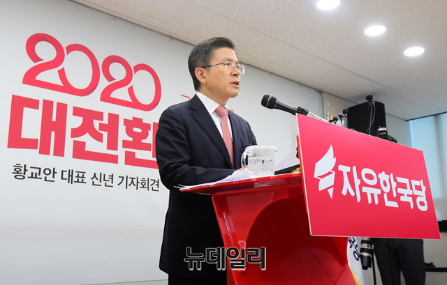 황교안 자유한국당 대표가 22일 오전 서울 영등포 중앙당사에서 신년 기자회견을 갖고 있다.