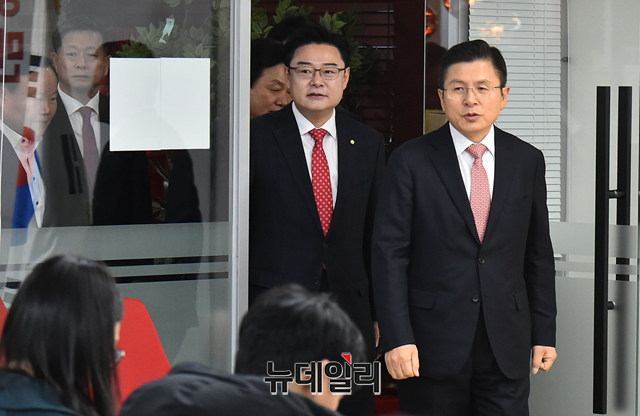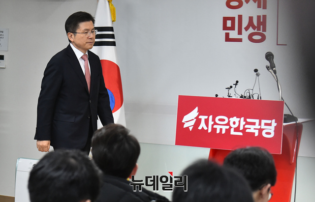 황교안 자유한국당 대표가 22일 오전 서울 영등포 중앙당사에서 열린 신년 기자회견을 위해 입장하고 있다.