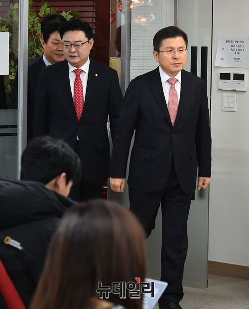 [포토] 회견장 들어서는 황교안 자유한국당 대표