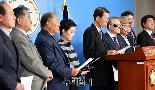 김태훈 한반도인권과 통일을위한 변호사모임(한변) 상임대표가 22일 국회 정론관에서 자유수호연석회의 결성을 촉구하는 기자회견을 갖고 있다.김 대표는 성명을 통해 정치, 경제, 사회, 종교, 교육, 언론, 문화 분야의 모든 자유민주주의를 신봉하는 시민세력과 정치단체를 대상으로 △자유민주주의 헌정의 가치를 믿는 모든세력은 조건없이 '자유수호연석회의' 결성에 참여 △4.15총선과 차기 대선에서 자유진영이 승리하는 날까지 협력할 것 △국정 전면재조정 운동과 선거공약화 촉구 등을 요구했다.