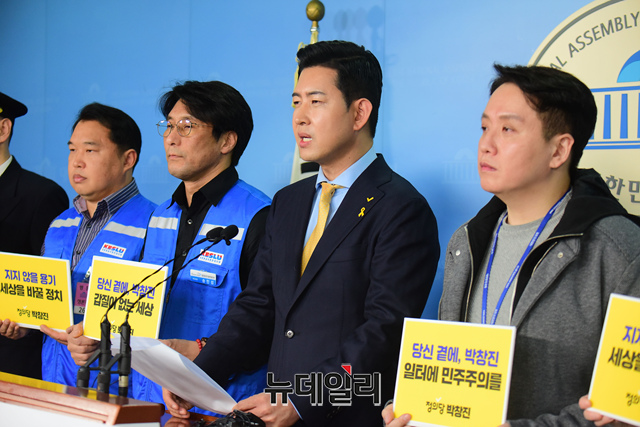 박창진 정의당 국민의노동조합 위원장이 22일 오후 국회 정론관에서 비례대표후보 경선 출마 기자회견을 을 갖고 있다.