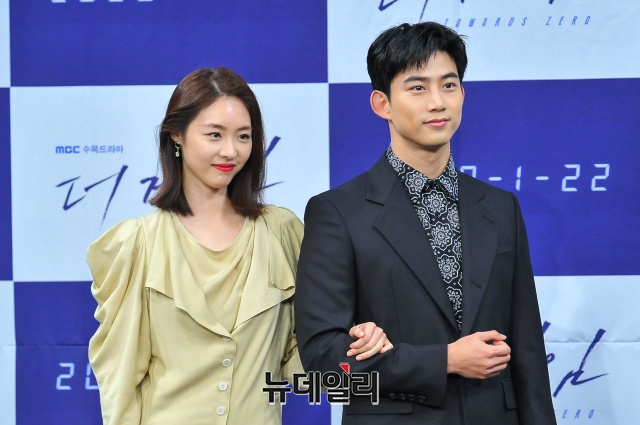 배우 이연희(왼쪽)와 옥택연이 22일 오후 서울 마포구 상암MBC 골든마우스홀에서 열린 드라마 ‘더 게임:0시를 향하여(연출 장준호 노영섭, 극본 이지효)’ 제작발표회에서 포토타임을 갖고 있다.