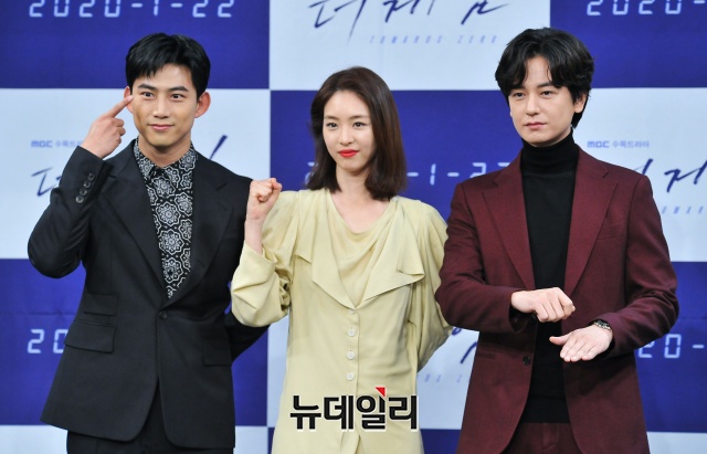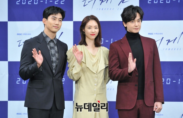 배우 옥택연(왼쪽부터), 이연희, 임주환이 22일 오후 서울 마포구 상암MBC 골든마우스홀에서 열린 드라마 ‘더 게임:0시를 향하여(연출 장준호 노영섭, 극본 이지효)’ 제작발표회에서 포토타임을 갖고 있다.드라마 ’더 게임:0시를 향하여’는 죽음 직전의 순간을 보는 예언가 ‘태평(옥택연 분)’과 강력반 형사 ‘준영(이연희 분)’이 20년 전 ‘0시의 살인마’와 얽힌 비밀을 파헤쳐가는 이야기를 담았다. 22일 밤 8시 55분 MBC에서 첫 방송.