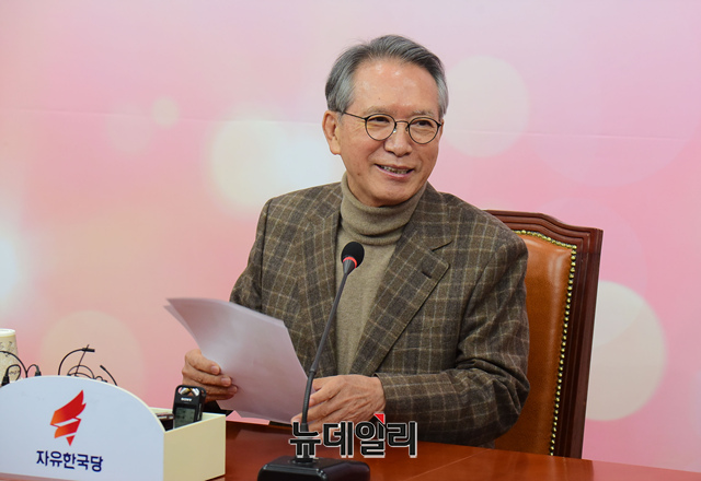 김형오 자유한국당 공천관리위원장이 22일 오후 국회에서 공천관리위원회위원 명단을 발표하고 있다.