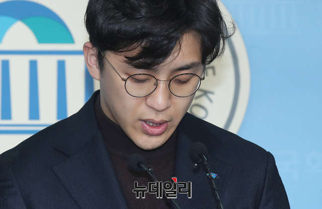 '미투(metoo)' 논란 의혹이 제기된 더불어민주당 2번째 영입인재인 원종건 씨가 28일 오전 국회 정론관에서 기자회견을 갖고 영입인재 자격을 자진 반납 의사를 밝히고 있다.지난 27일 어제 한 인터넷 커뮤니티에는 원종건 씨로부터 성적으로 학대받았다는 전 여자친구의 글이 게시되 논란이 됐다. 원 씨의 전 여자친구라고 밝힌 글 작성자는 "원씨에게 성 노리개' 취급을 받았고, 원 씨가 결코 페미니즘을 운운할 수 있는 사람이 아니다"라며 심경을 토로했다.