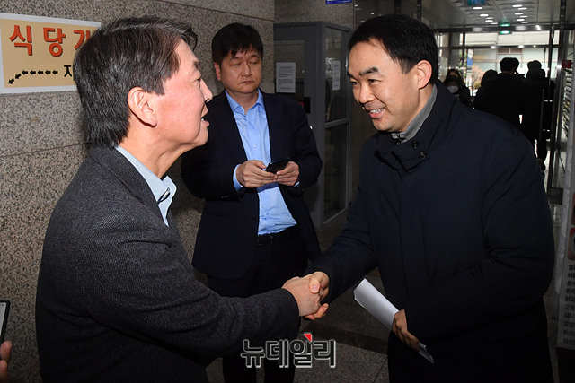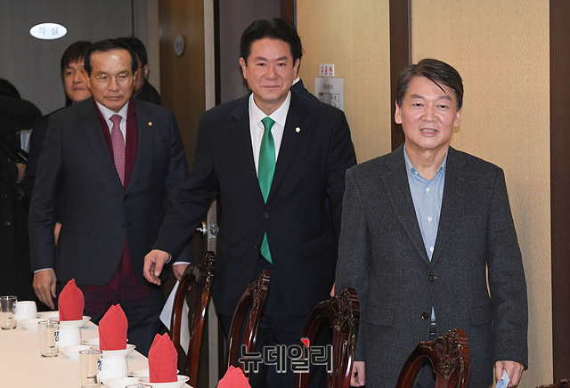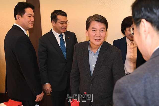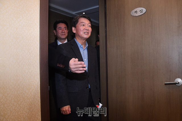 안철수 전 바른미래당 대표가 28일 오후 서울 여의도의 한 식당에서 의원들과 오찬간담회를 갖기 위해 오찬 장소에 입장하고 있다.