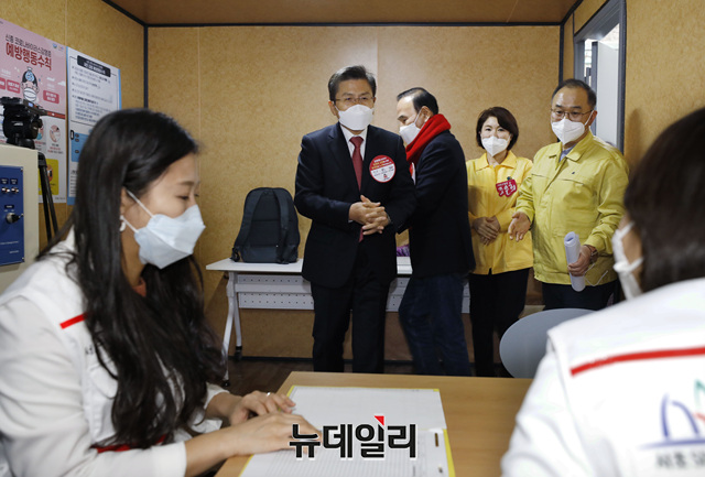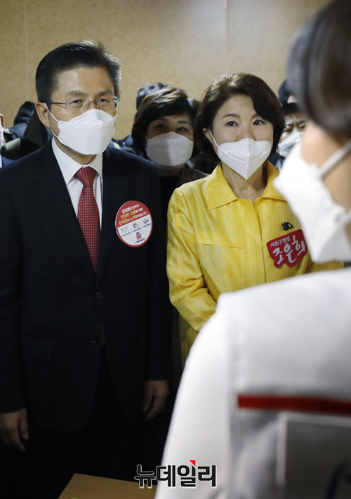 황교안 자유한국당 대표가 29일 서울 서초구 보건소에 마련된 우한 폐렴(신종 코로나바이러스 감염증) 선별진료소를 방문해 의료진을 격려하고 있다.