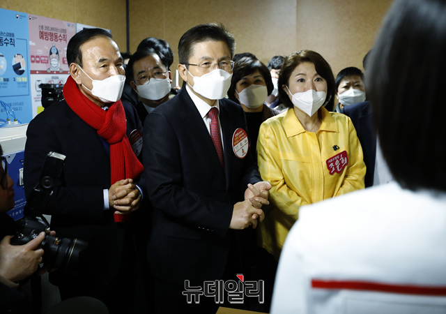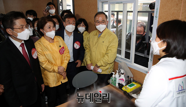 [포토] 우한폐렴 선별 진료소 격려 방문한 황교안