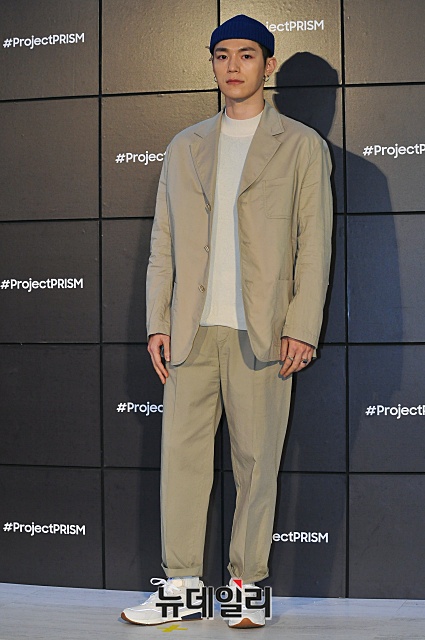 디자이너 차인철이 29일 오후 서울 강남구 삼성디지털프라자 강남본점에서 열린 '삼성 그랑데 AI' 런칭 행사에서 포토타임을 갖고 있다.