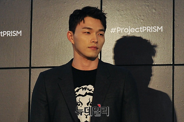 모델 변준서가 29일 오후 서울 강남구 삼성디지털프라자 강남본점에서 열린 '삼성 그랑데 AI' 런칭 행사에서 포토타임을 갖고 있다.