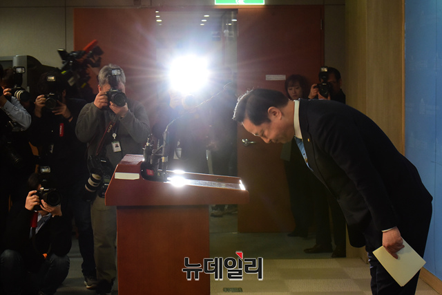 김두관 더불어민주당 의원이 30일 오전 국회 정론관에서 열린 4·15 총선 경남 양산(을) 출마선언 기자회견을 마치고 인사를 하고 있다.