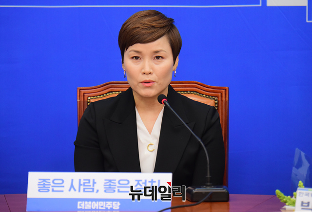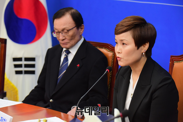 더불어민주당 15호 영입인재인 임오경 전 서울시청 여자 핸드볼팀 감독이 30일 오전 국회에서 열린 더불어민주당 인재영입 발표회에 참석해 소감을 밝히고 있다.