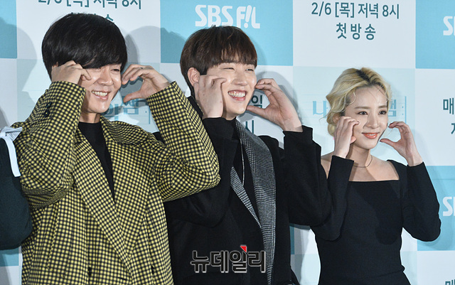 작곡가 안재환(왼쪽부터), 가수 주이, 김재환, 윤도현, 산들, 산다라박이 30일 오후 서울 마포구 SBS 프리즘타워에서 열린 SBS FiL 예능프로그램 '나의 음악쌤 밍글라바' 제작발표회에서 포토타임을 갖고 있다.'나의 음악쌤 밍글라바'는 예체능 교육이 활성화되지 않은 미얀마에 출연진들이 음악 선생님으로 활약하며 겪는 감동과 재미를 담았다. 2월 6일 오후 8시 'SBS FiL'과 'SBS MTV'에서 첫 방송된다. 'SBS FiL'은 지난 10월 개국했다.