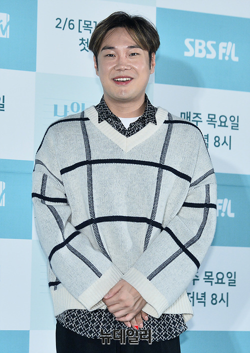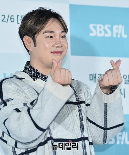 작곡가 안재환이 30일 오후 서울 마포구 SBS 프리즘타워에서 열린 SBS FiL 예능프로그램 '나의 음악쌤 밍글라바' 제작발표회에서 포토타임을 갖고 있다.