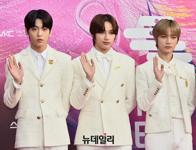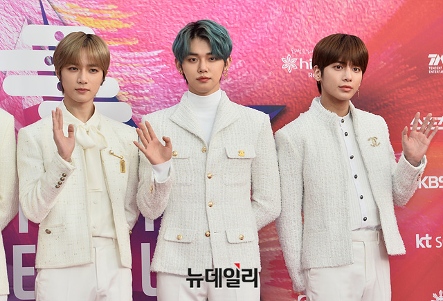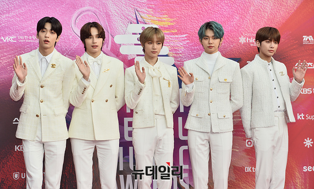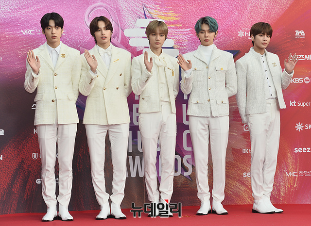 아이돌그룹 '투모로우바이투게더(TXT)'가 30일 오후 서울 구로구 고척스카이돔에서 열린 '제29회 하이원 서울가요대상' 레드카펫 행사에서 포토타임을 갖고 있다.