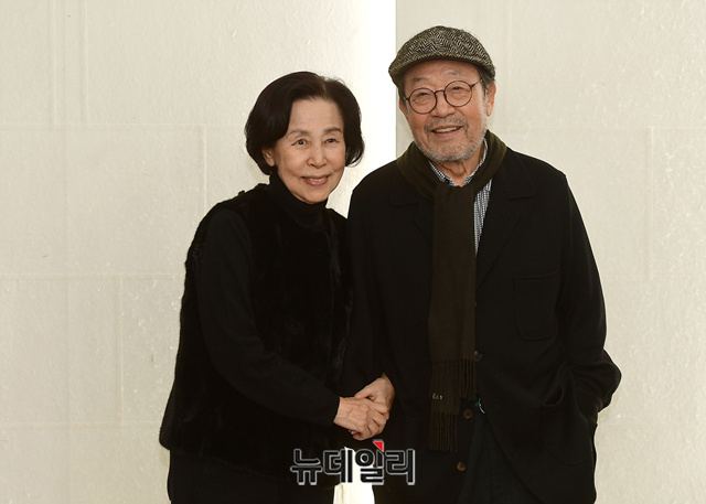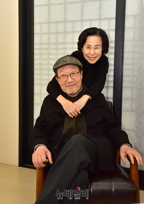 원로배우 신구와 손숙이 30일 오후 서울 종로구 세종문화회관에서 진행된 연극 '아버지와 나와 홍매와' 라운드 인터뷰에 앞서 포토타임을 갖고 있다.'아버지와 나와 홍매와'는 간암 말기의 아버지를 지켜보는 한 가족의 이야기를 담고 있다. 아버지의 죽음을 앞두고 가족들의 일상을 덤덤하게 묘사한다. 연극은 부모 자식간의 사건과 가족들의 기억의 지점들을 덤덤하지만 세밀하게 풀어간다.간암 말기의 아버지 역은 신구가 가족을 위해 한 평생 희생하는 어머니 역은 손숙이 맡았다. 조달환, 서은경은 각각 아들과 며느리로 분하고, 최명경은 정씨 아저씨 역을 맡았다.2월 14일부터 3월 22일까지 세종문화회관 S씨어터에서 공연.