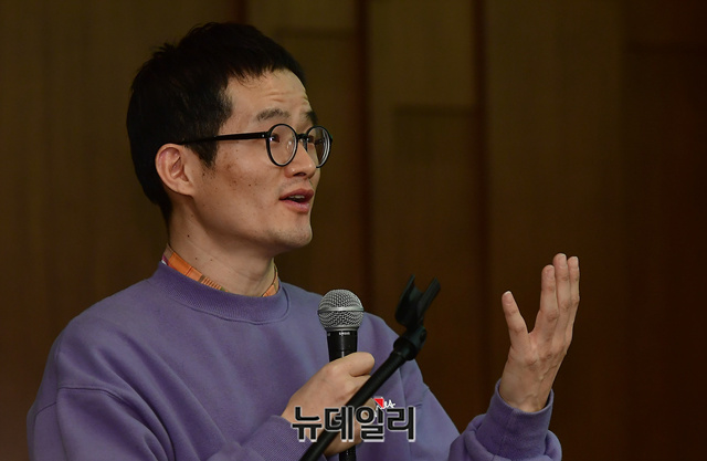 이영식 감독이 30일 오전 서울 마포구 스탠포드호텔에서 열린 예능 '맛있는 녀석들' 5주년 기자간담회에서 다이어트 이벤트 대상자를 선정할 방법에 대해 소개하고 있다.