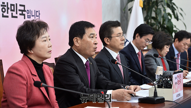 심재철 자유한국당 원내대표가 3일 오전 국회에서 열린 최고위원회의에서 모두발언을 하고 있다.