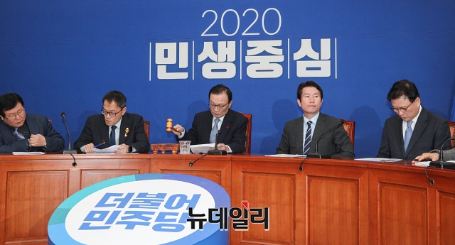 이해찬 더불어민주당 대표가 3일 오전 국회에서 열린 최고위원회의에서 의사진행을 하고 있다.