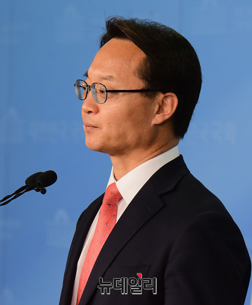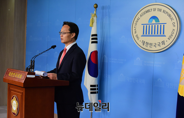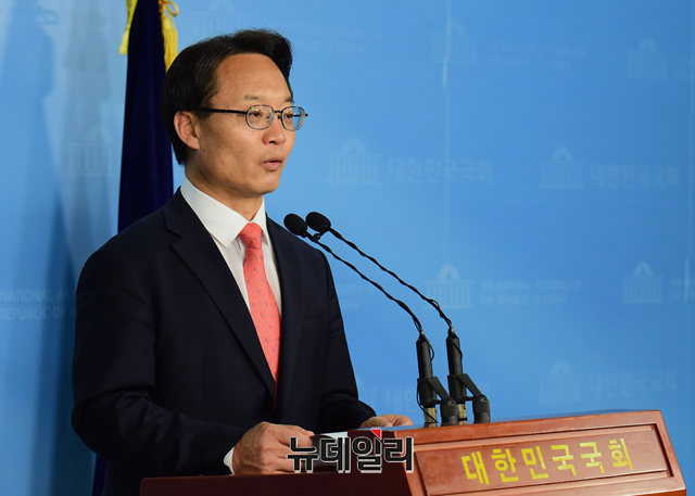 조해진 자유한국당 예비후보(밀양-의령-함안-창녕)가 22일 오전 국회 정론관에서 기자회견을 갖고 출마선언 및 홍준표 전 대표 관련 발언을 하고 있다.