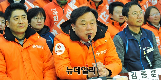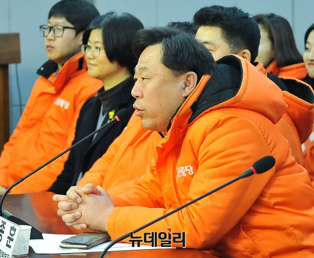 김종훈 민중당 원내대표가 3일 오전 국회 의원회관에서 열린 ‘민중당 선거대책위원회 출범식’에서 발언을 하고 있다.