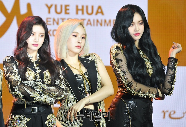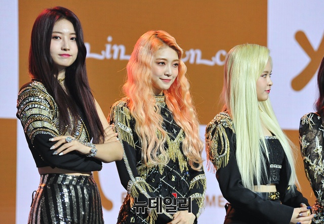 걸그룹 ‘에버글로우(EVERGLOW)’가 3일 오후 서울 용산구 블루스퀘어 아이마켓홀에서 열린 첫 번째 미니앨범 ‘레미니선스(reminiscence)’ 쇼케이스에서 포토타임을 갖고 있다.