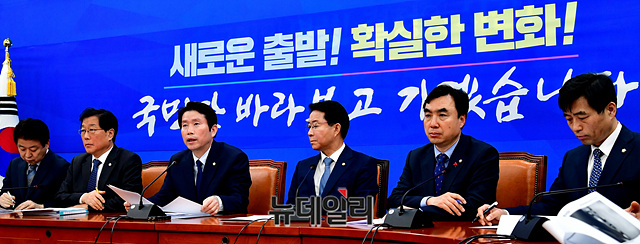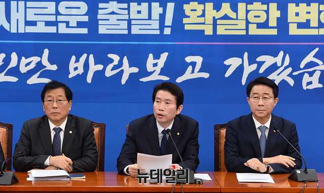 이인영 더불어민주당 원내대표가 4일 오전 국회에서 열린 원내대책회의·상임위간사단 연석회의에서 모두발언을 하고 있다.