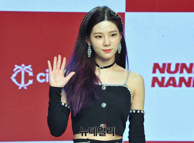 걸그룹 ‘시그니처(signature)’ 셀린이 4일 오후 서울 강남구 일지 아트홀에서 열린 데뷔 쇼케이스에서 포토타임을 갖고 있다.