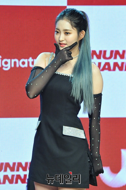 걸그룹 ‘시그니처(signature)’ 세미가 4일 오후 서울 강남구 일지 아트홀에서 열린 데뷔 쇼케이스에서 포토타임을 갖고 있다.멤버는 채솔, 지원, 예아, 선, 셀린, 벨, 세미로 구성됐다.