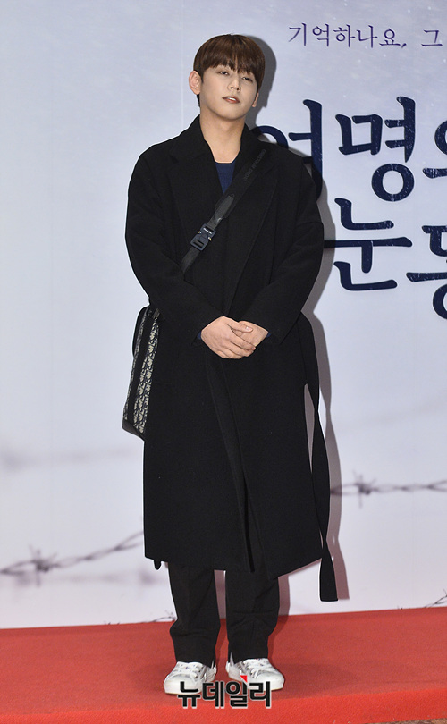 아이돌그룹 마이네임 김세용이 4일 오후 서울 종로구 세종문화회관에서 열린 뮤지컬 '여명의 눈동자' 시사회에서 포토타임을 갖고 있다.