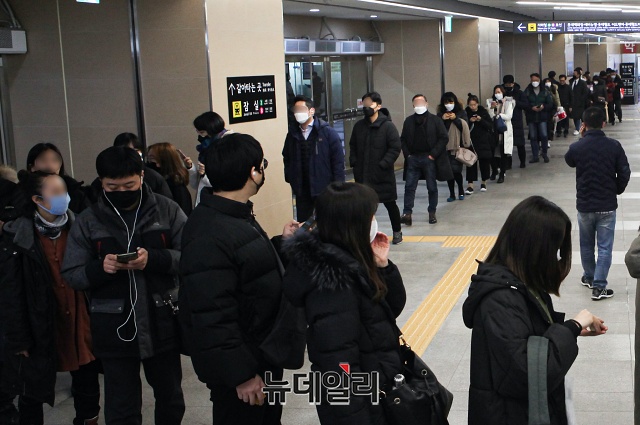 국내에서 신종 코로나바이러스 감염증 16번째 확진자가 나온 4일 오후 서울 송파구 잠실역 일대에서 대부분의 시민들이 마스크를 쓴 채 퇴근하고 있다.