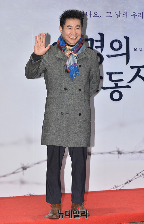 배우 박상원이 4일 오후 서울 종로구 세종문화회관에서 열린 뮤지컬 '여명의 눈동자' 시사회에서 포토타임을 갖고 있다.