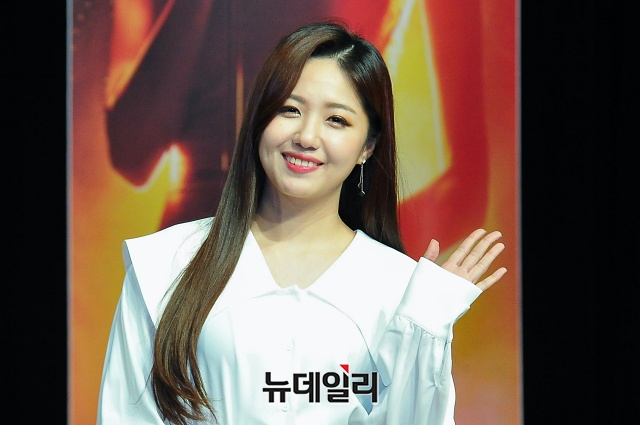가수 정다경이 5일 오후 서울 강남구 일지아트홀에서 열린 뮤지컬 ’트롯연가’ 제작발표회에서 포토타임을 갖고 있다.