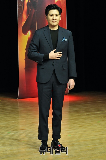 가수 홍경민이 5일 오후 서울 강남구 일지아트홀에서 열린 뮤지컬 ’트롯연가’ 제작발표회에서 포토타임을 갖고 있다.