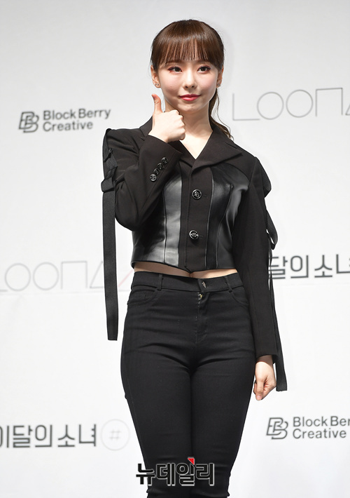 걸그룹 이달의소녀 멤버 비비가 5일 오후 서울 광진구 예스24 라이브홀에서 열린 새 미니앨범 '#(해시)' 쇼케이스에서 포토타임을 갖고 있다.
