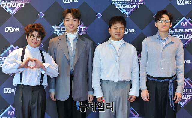 밴드 하이브로가 6일 오후 서울 마포구 CJ ENM 센터에서 열린 생방송 엠카운트다운에 앞서 포토타임을 갖고 있다.
