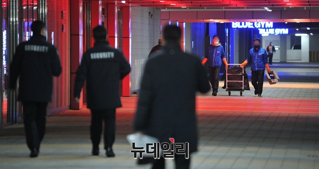 신종 코로나 바이러스 감염증 23번째 확진자가 나온 6일 오후 19번째 확진자가 거주한 것으로 알려진 서울 송파구의 한 아파트 단지에서 관리자들이 폐기물을 처리하고 있다.