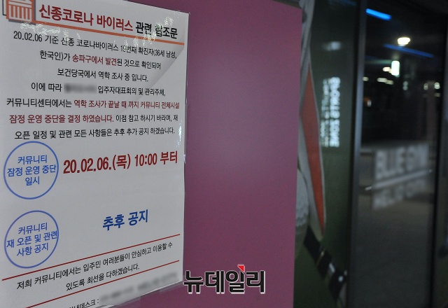 19번째 확진자가 나온 아파트 단지 경로당은 4일부터 운영을 중단한 상태다. 커뮤니티 시설은 확진자가 발생한 오전부터 운영을 중단했다.