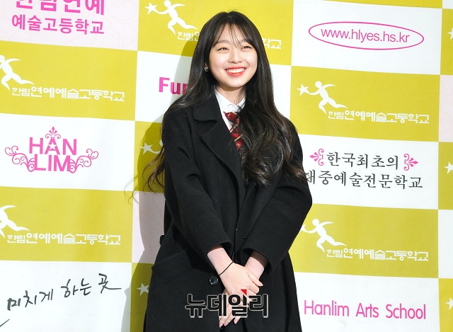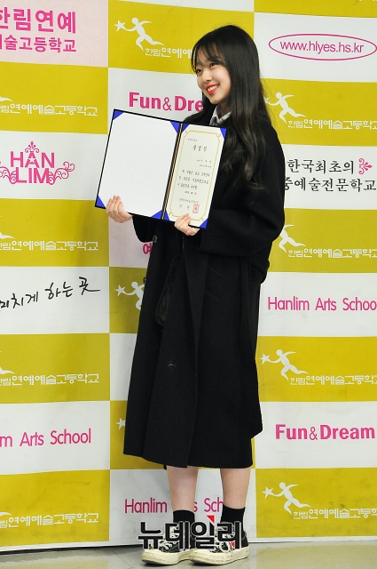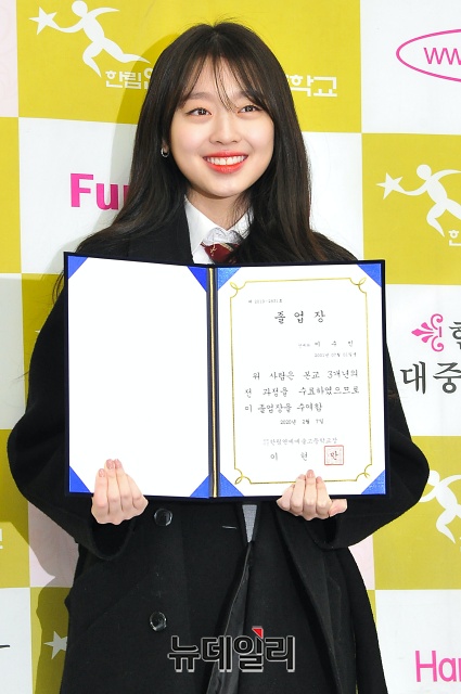 배우 이수민이 7일 오전 서울 송파구 한림연예예술고등학교 졸업식에서 포토타임을 갖고 있다.