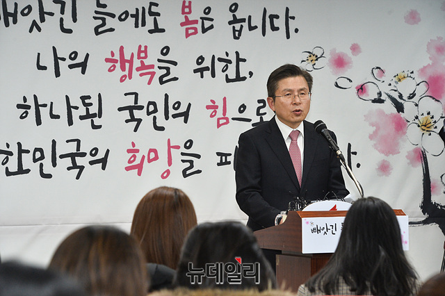 황교안 자유한국당 대표가 7일 오후 서울 영등포구 자유한국당 중앙당사에서 제21대 총선 '종로' 출마 기자회견을 하고 있다.