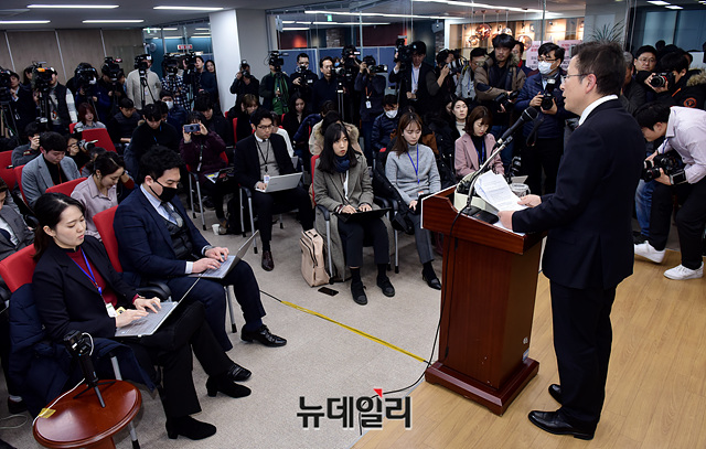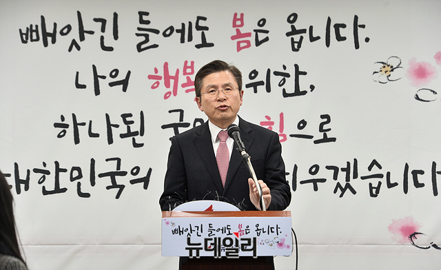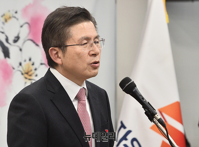 황교안 자유한국당 대표가 7일 오후 서울 영등포구 자유한국당 중앙당사에서 제21대 총선 '종로' 출마 기자회견을 하고 있다.