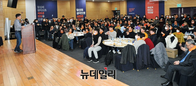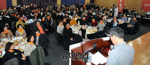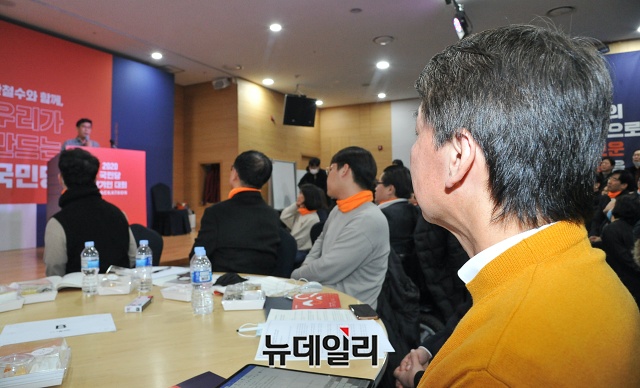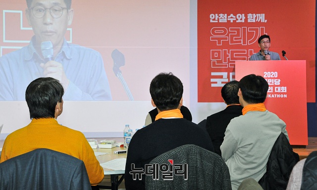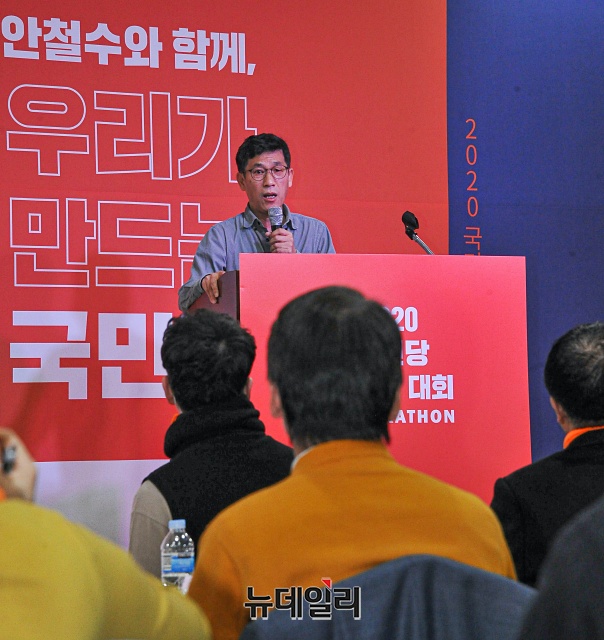 진중권 전 동양대 교수가 9일 오후 서울 영등포구 하이서울유스호스텔에서 열린 국민당(가칭) 중앙당 창당발기인대회행사 참석해 "무너진 정의와 공정의 회복"을 주제로 강연을 하고 있다.