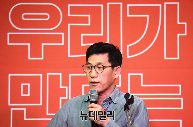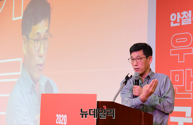 진중권 전 동양대 교수가 9일 오후 서울 영등포구 하이서울유스호스텔에서 열린 국민당(가칭) 중앙당 창당발기인대회행사 참석해 "무너진 정의와 공정의 회복"을 주제로 강연을 하고 있다.