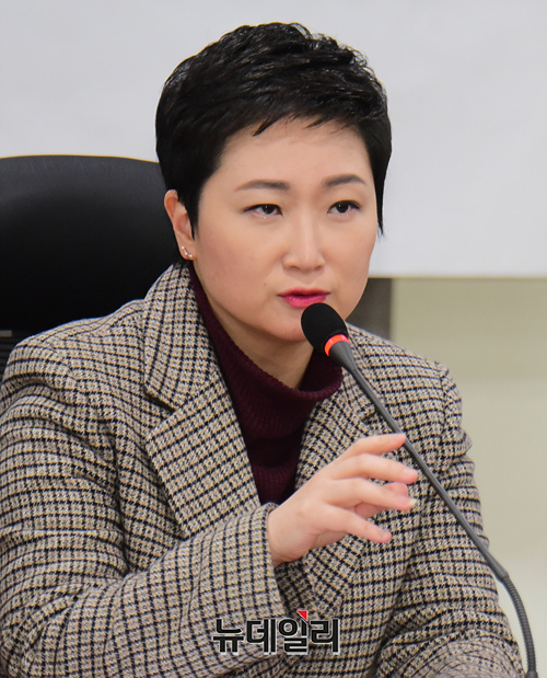 이언주 통합신당준비위원회 공동위원장이 10일 오후 국회 의원회관에서 열린 통합신당준비위원회의에 참석해 모두발언을 하고 있다.